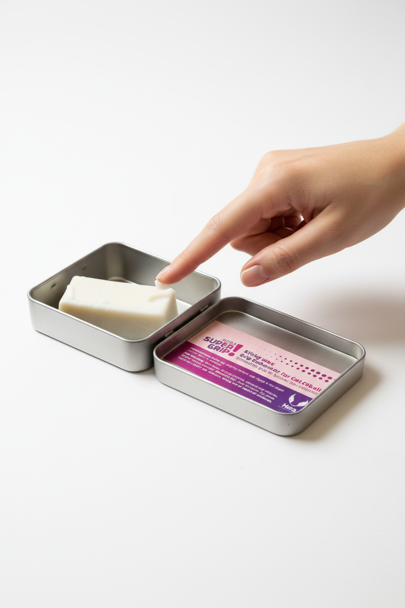 השעווה מתחממת בידיים תוך שניות, נמרחת בקלות ויוצרת שכבת אחיזה נוחה שלא מלכלכת ולא מתפוררת.